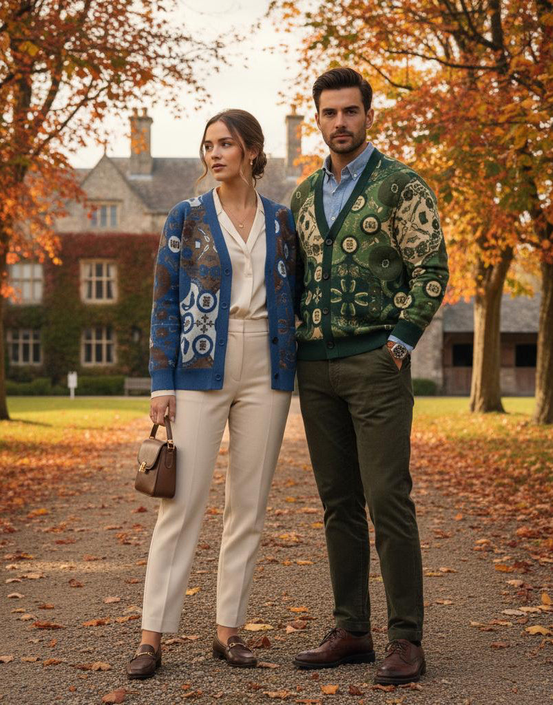 Србија кадриган од мешавине памука и вуне , са добро познатим шарама. Богатство дизајну дају сви они симболи на које прво помислите када неко помене Србију. Труба, шајкача, божур, гусле и још много тога.